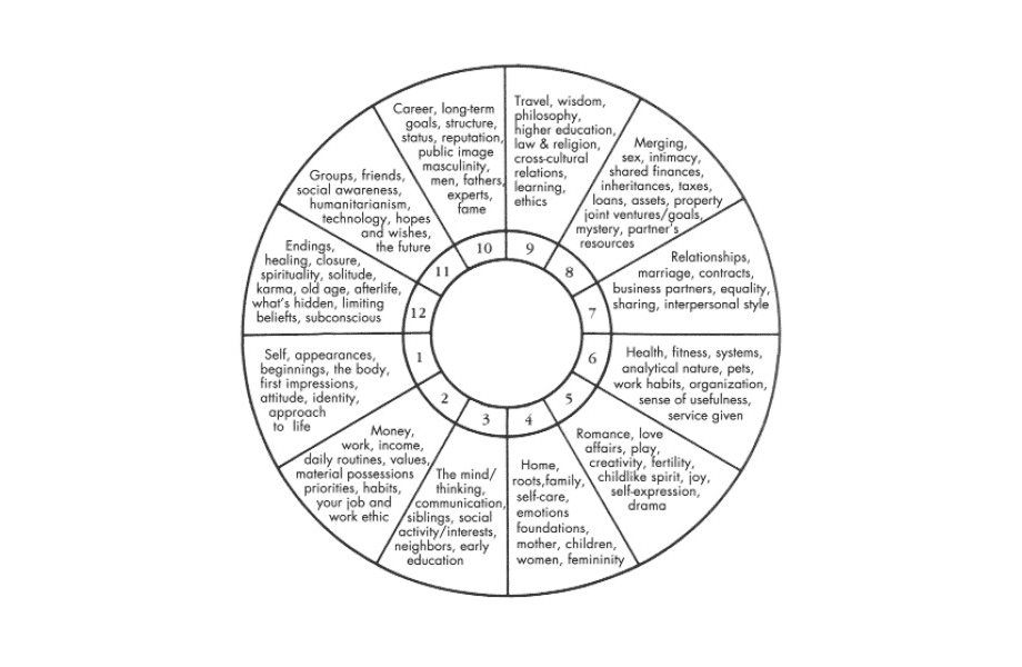 As a Hellenistic traditional astrologer who works with the Whole Sign House system, I see the chart as a circle divided into twelve houses, each representing a different area of you as seen in the image below
